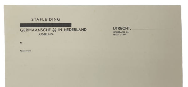 Originele Wo2 Nederlands Document - Ongebruikt briefpapier Stafleiding Germaansche SS in Nederland Afdeeling Utrecht