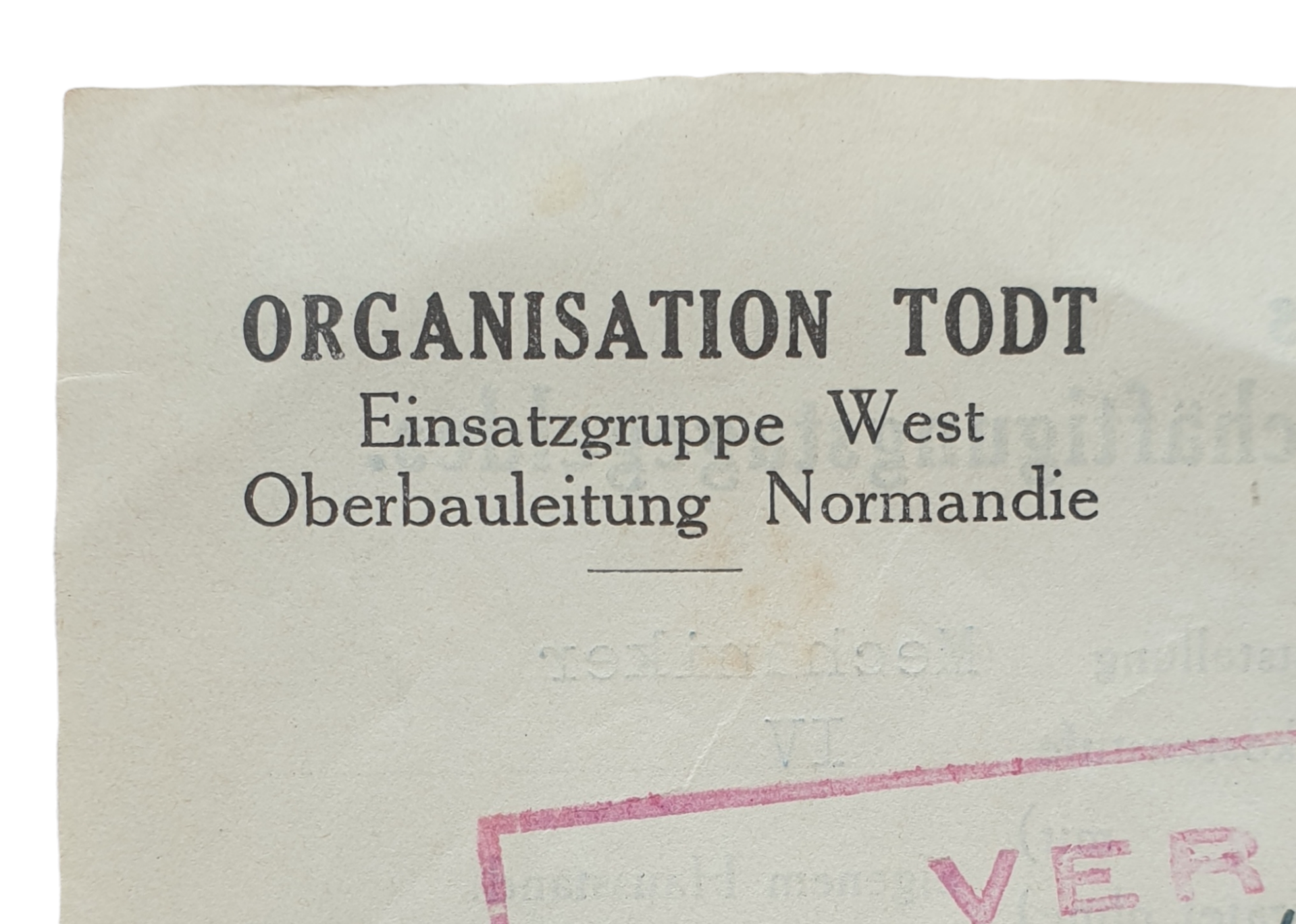 Origineel Wo2 Duits document - Organisation Todt Oberbauleitung Normandie uitbetalings bon (1942)