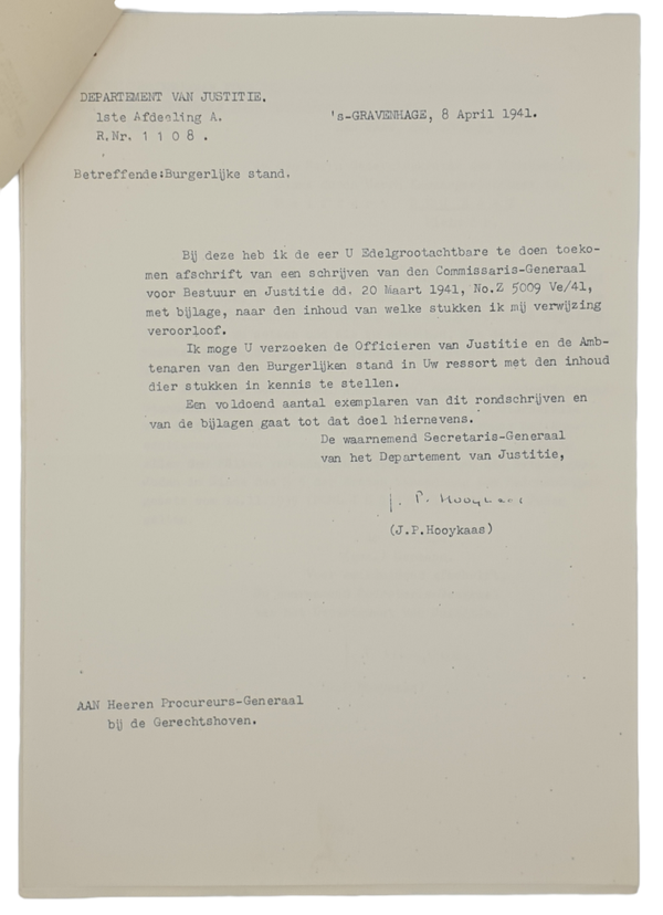 Original WW2 Dutch Document - Notice Registration of civil status (1941)