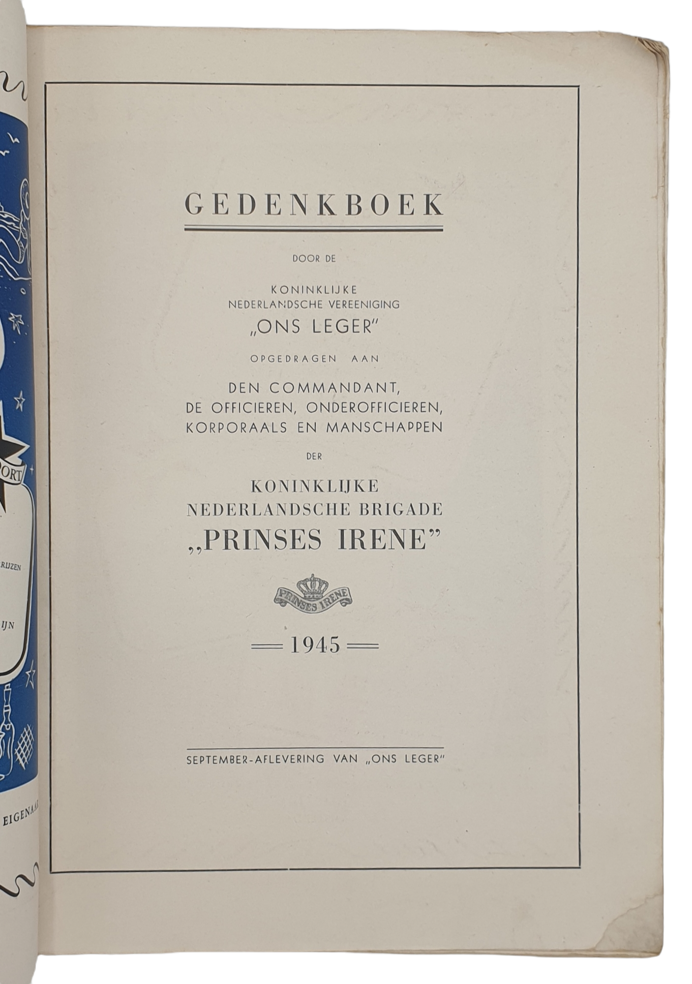 Orgineel WO2 Nederlands Boek - Prinses Irene Brigade Gedenkboek (1945)