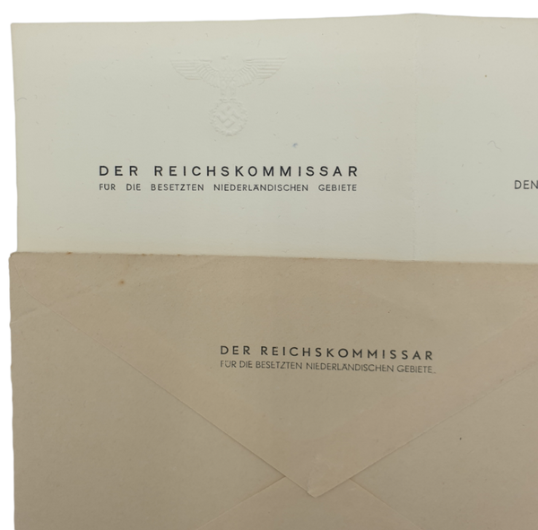 Der Reichskommissar für die Besetzten Niederländischen Gebiete, Den Haag (The Hague). Met envelop. Dit was het briefpapier dat Arthur Seyss-Inquart gebruikte.