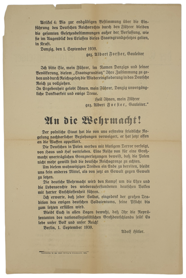 Kölnischen Zeitung extra edition about the annexation of Danzig from 1939.
