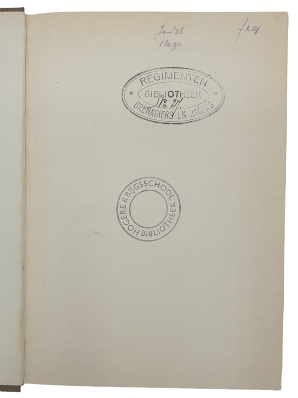 Uit de Bibliotheek van de Regimenten Grenadiers en Jagers, later uit de hogere krijgsschool.