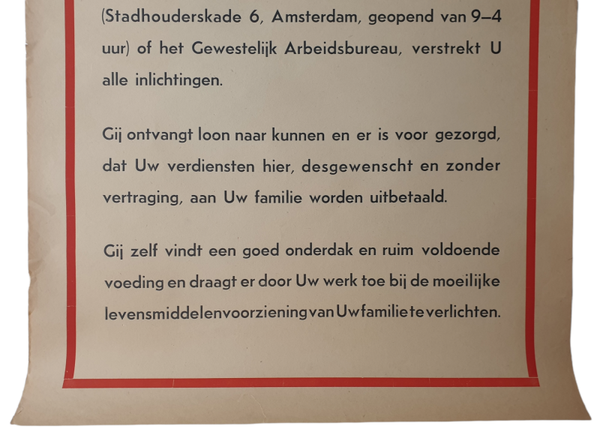 Original WW2 Dutch Poster - ''Dutchman, can't find a job? There is work for you in Germany!'', Amsterdam