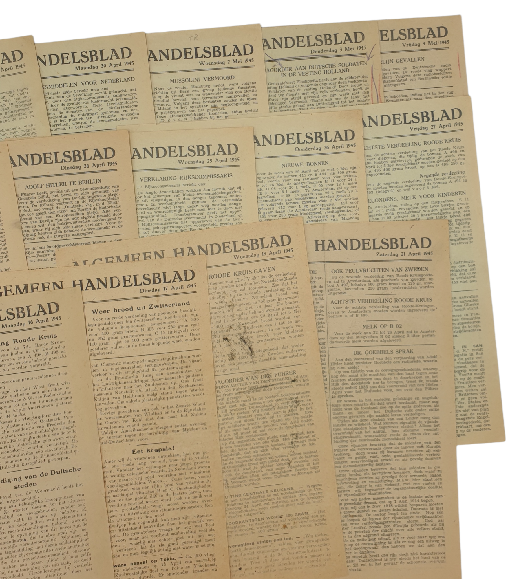 Original WW2 Dutch Newspaper - 14 very late war ''Algemeen Handelsblad'' editions (1945)