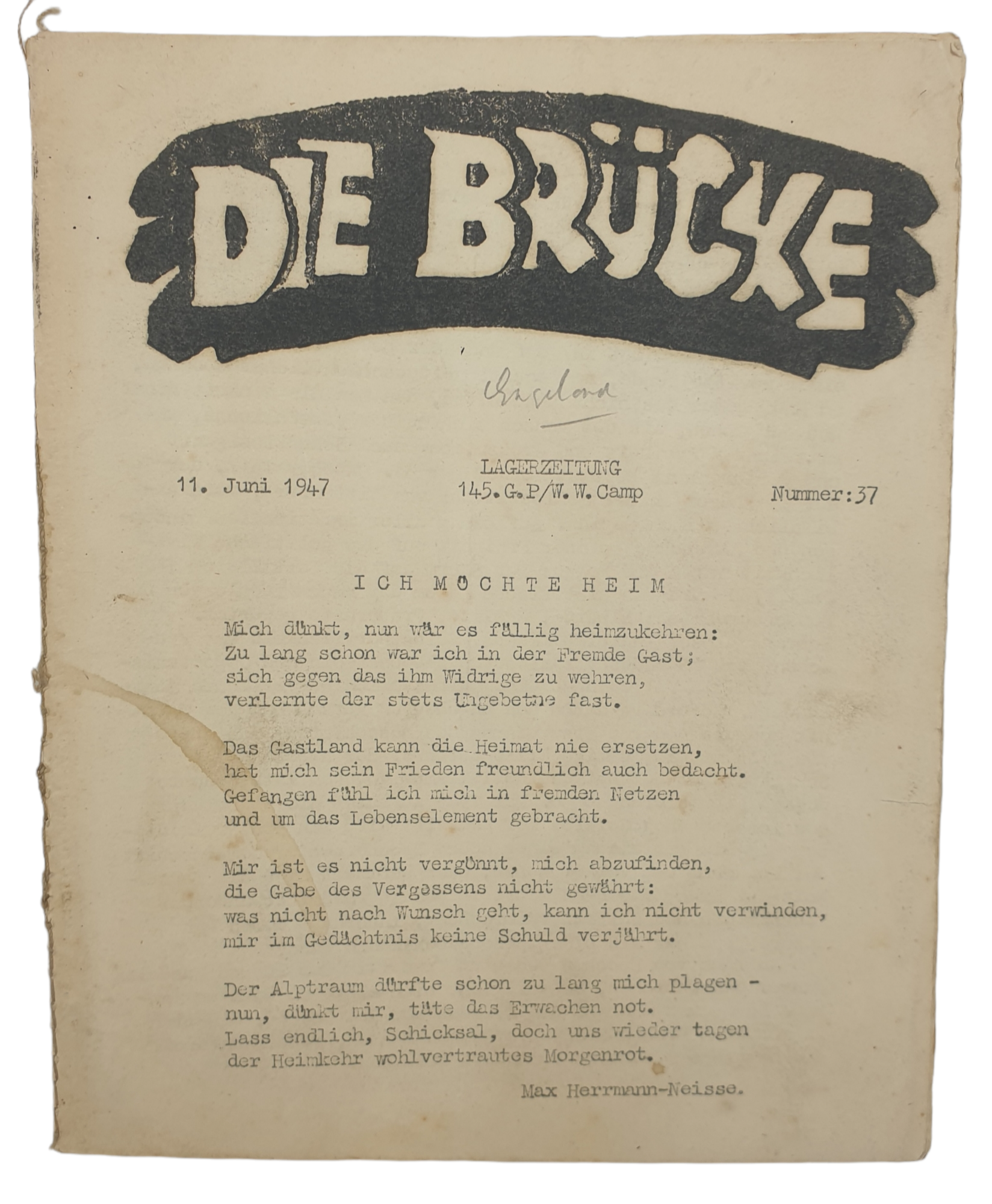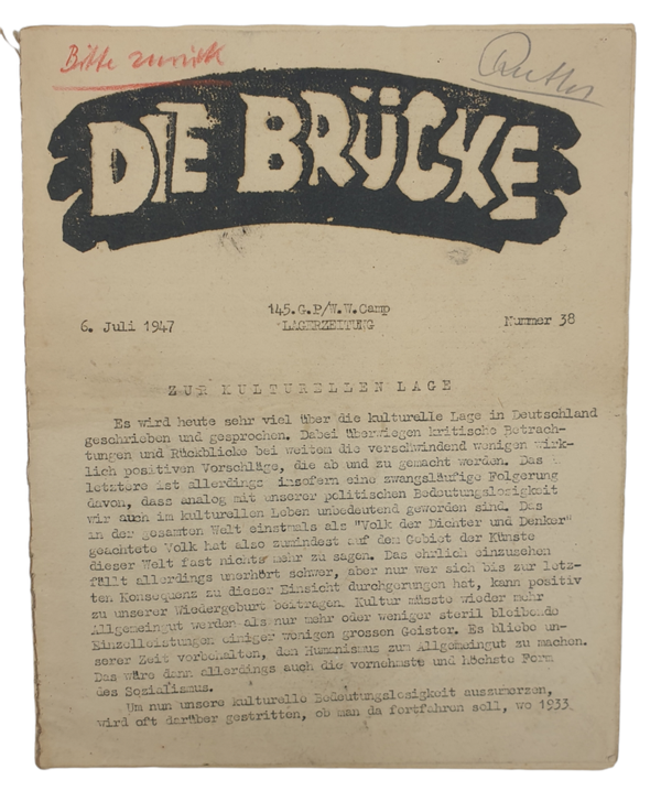 Original WW2 German Magazine - Die Brücke Lagerzeitung 145. G.P./W.W. Camp, England (1947)