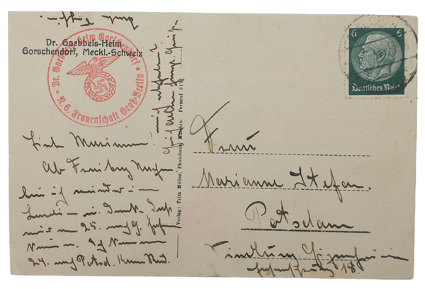 Originele Wo2 Duitse Postkaart - Dr. Goebbels Heim Gorschendorf, NS Frauenschaft (1933)