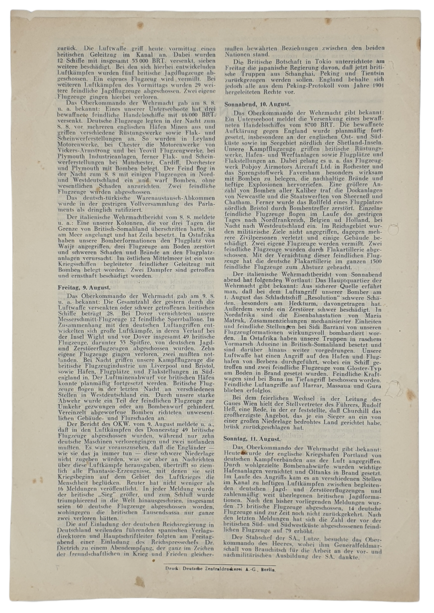 Original WW2 German Document - Berliner Briefe ''Wochenberichte für Deutsche Seeleute'' (1940)