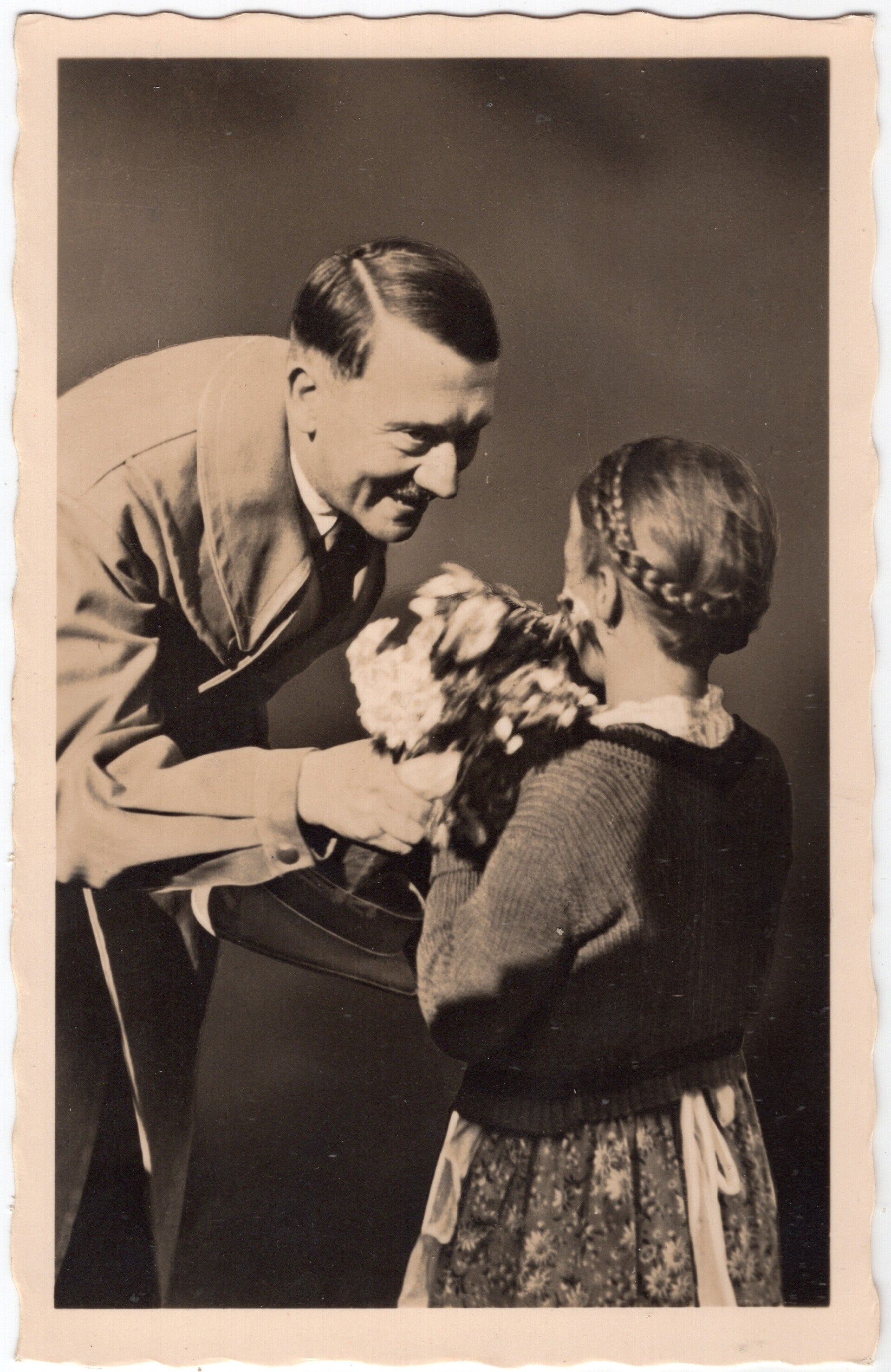 Original WW2 German Postcard - Adolf Hitler getting flowers from a child