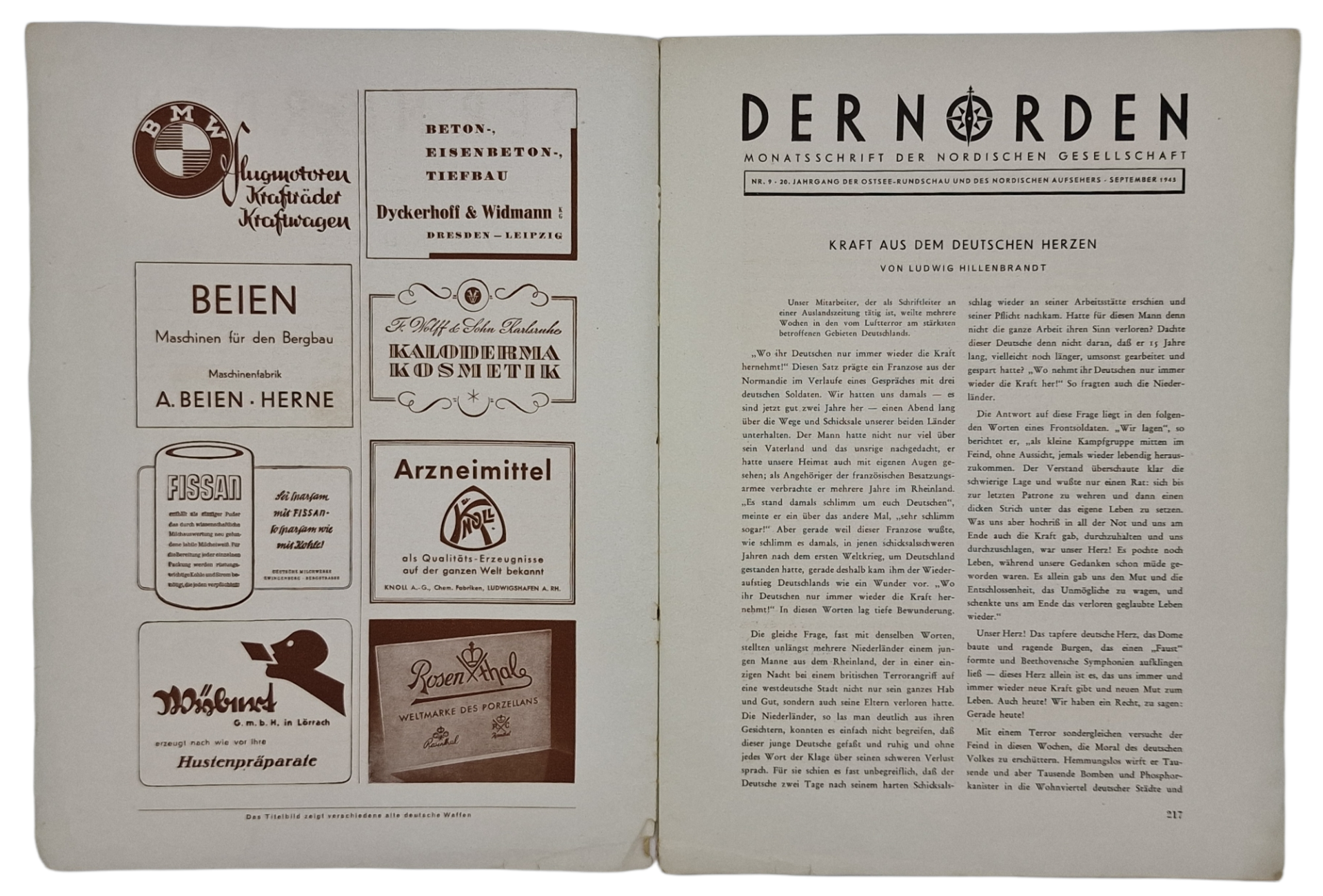 Original WW2 German Magazine - Der Norden No. 9 (1943)