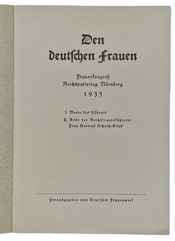 Original WW2 German Brochure - Den Deutschen Frauen Frauenkongress Reichsparteitag Nürnberg (1935)