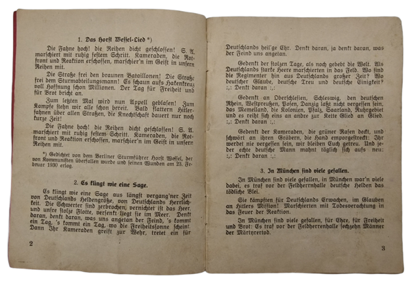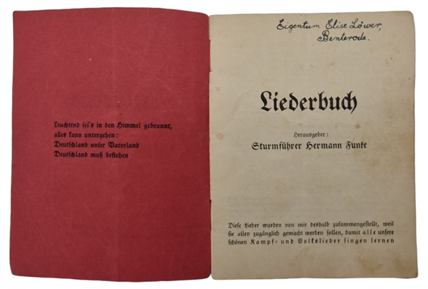 Original WW2 German Brochure - Liederbuch Sturmführer Hermann Funke