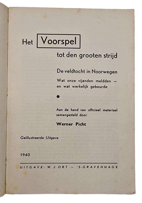 Originele Wo2 Nederlandse Brochure - Het voorspel tot den Grooten Strijd, Werner Picht (1940)