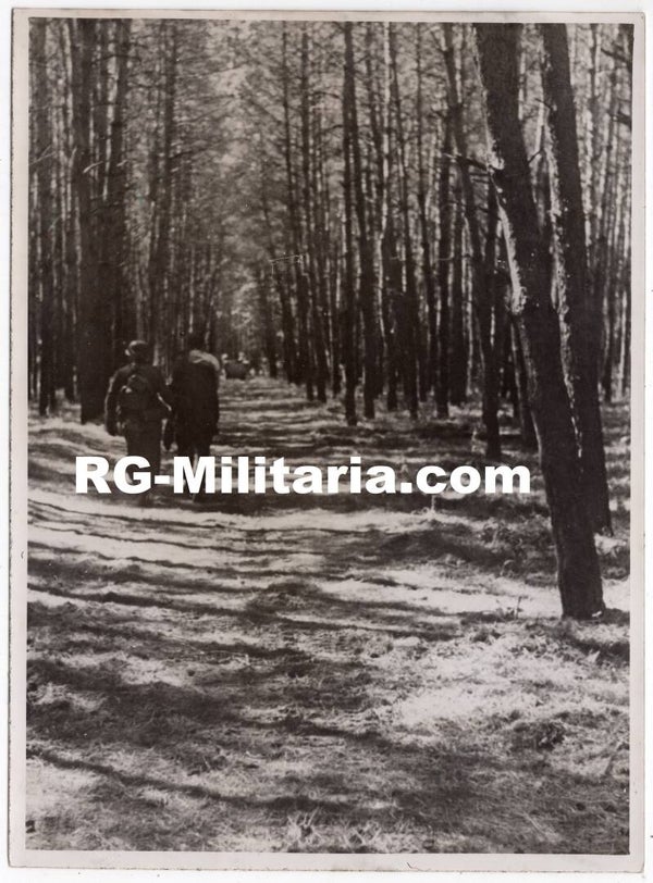 Original WW2 German SS Press Photo - SS soldiers walking in the woods, Eastern Front (1943)