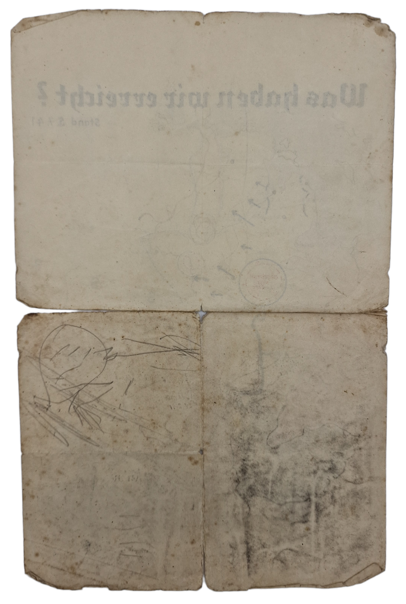 ''Was haben wir erreicht''. Very damaged on the folds. Korpskartenstelle 452.