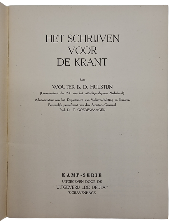 Originele Wo2 Nederlandse Collaboratie Brochure - Het schrijven voor de krant, Wouter B. D. Hulstijn (1941)