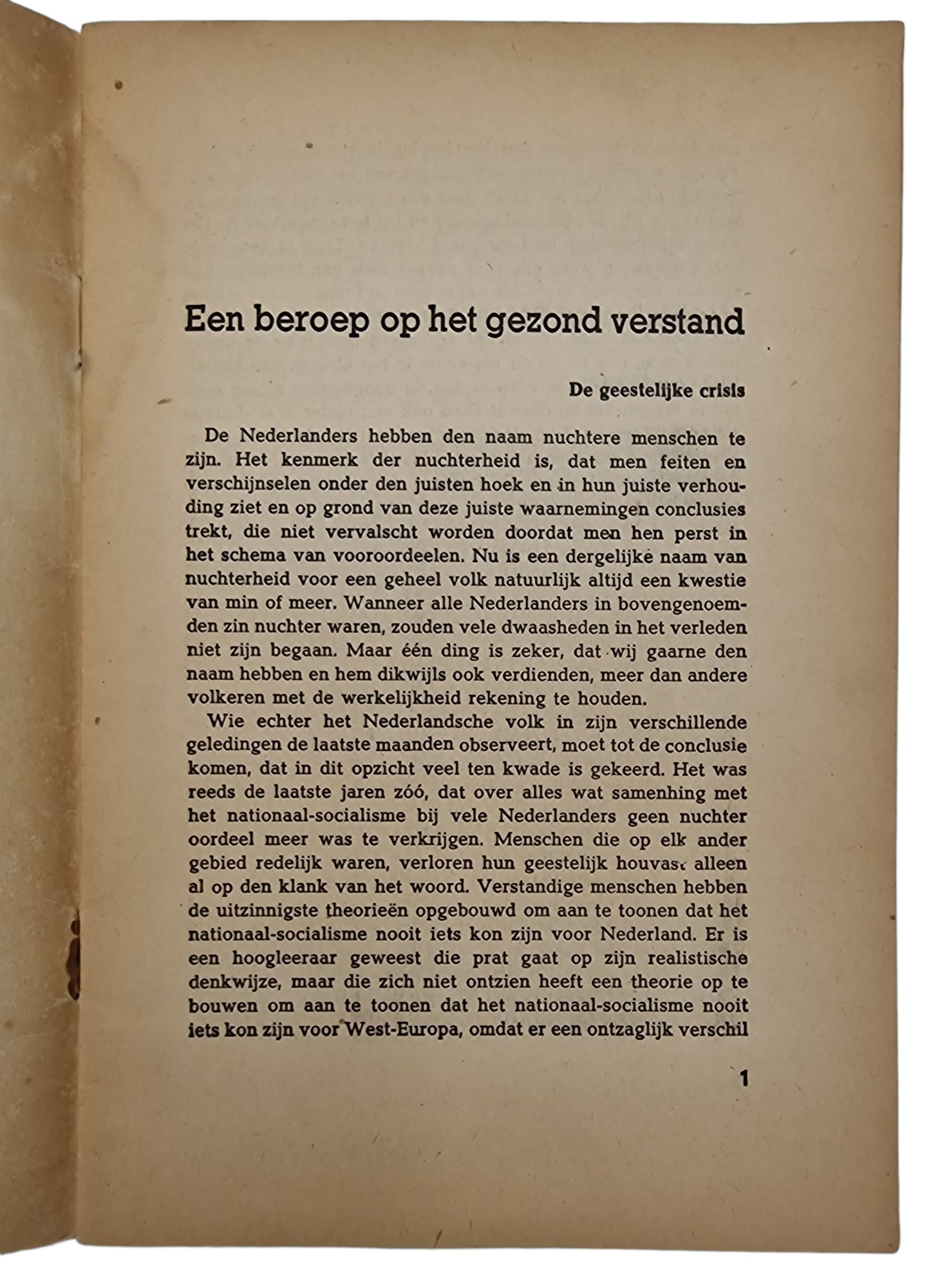 Original WW2 Dutch Collaboration NSB Brochure - Een beroep op het gezond verstand, R. van Genechten (1941)