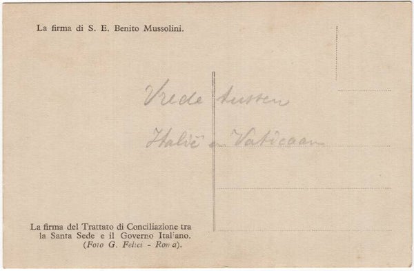 Original WW2 Italian Postcard - La firma di S. E. Benito Mussolini, Vatican (1929)