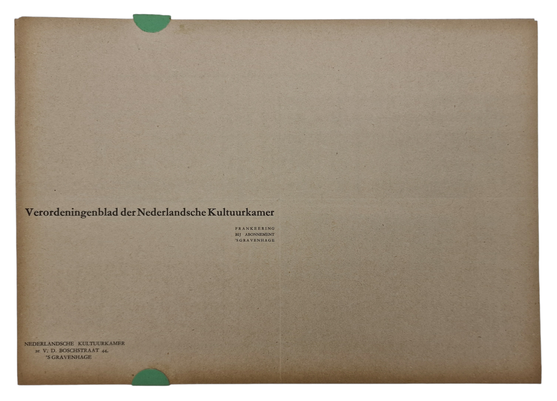 Original WW2 Dutch Collaboration Document - Verordeningenblad Nederlandsche Kultuurkamer No. 1 (1944)