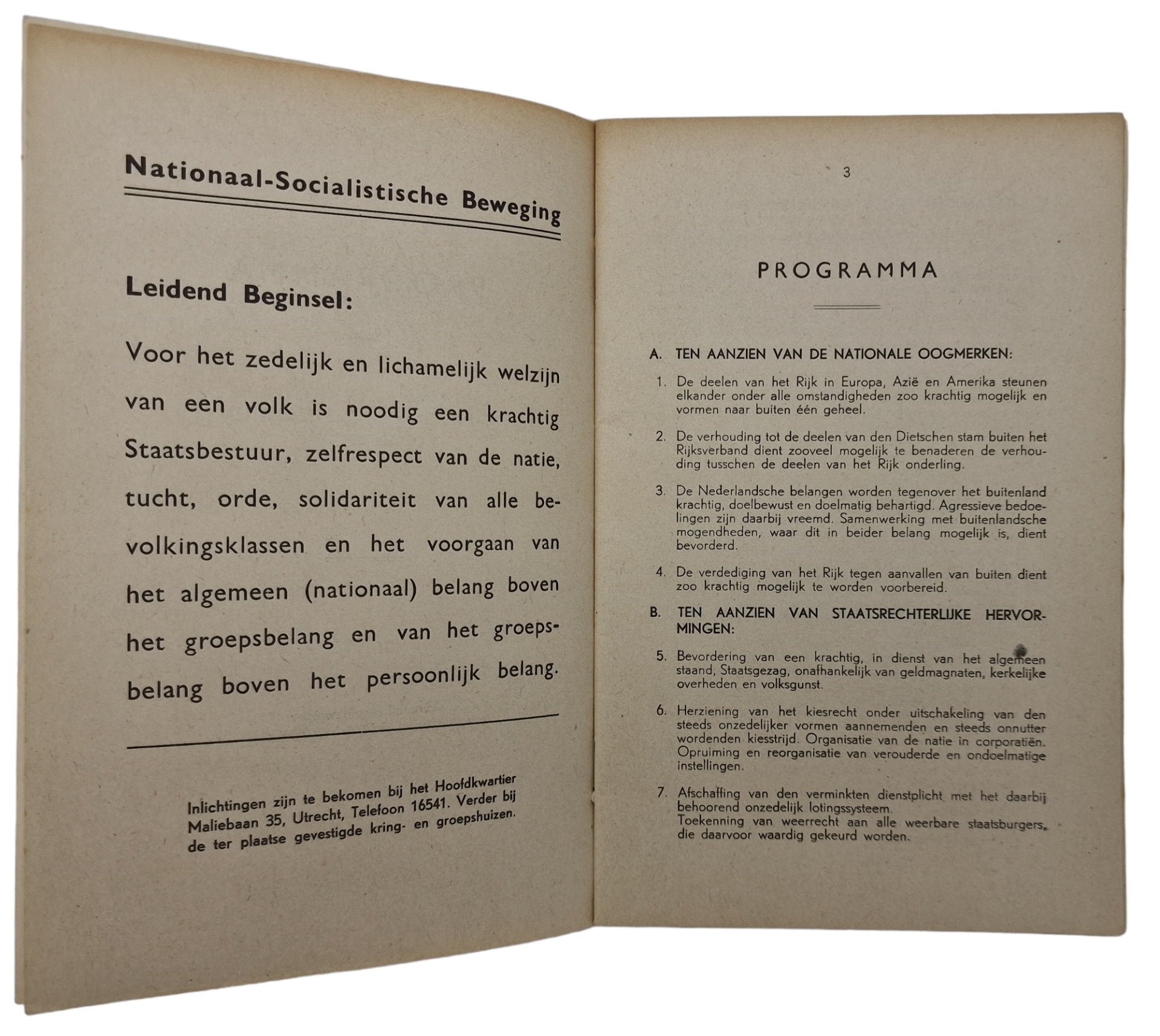 Original WW2 Dutch NSB Collaboration Brochure - Programma met toelichting (1 en 2) (1931)