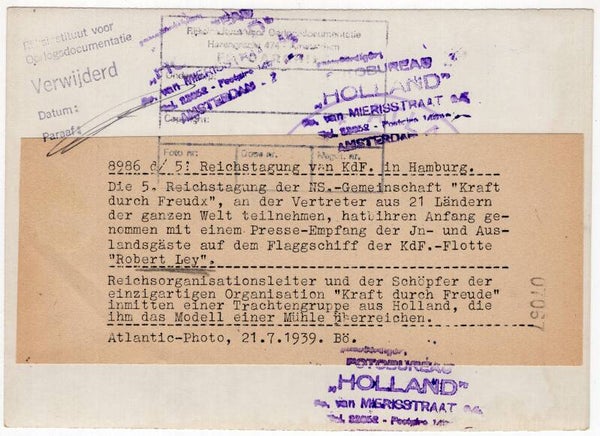 Originele Wo2 Duitse Persfoto - KDF Kraft Durch Freude Dutch Women with Robert Ley (1939)