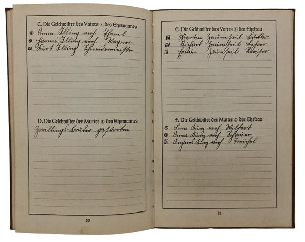 Original WW2 German Document - Filled in Ahnenpass