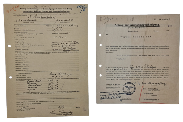 Original WW2 Dutch Document - Fragebogen für Reichsdeutsche Maastricht set (1943)