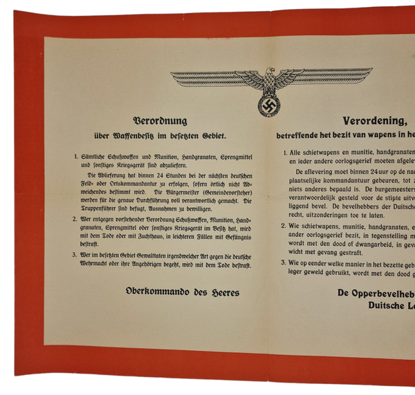''Verordening betreffende het bezit van wapens in het bezette gebied''