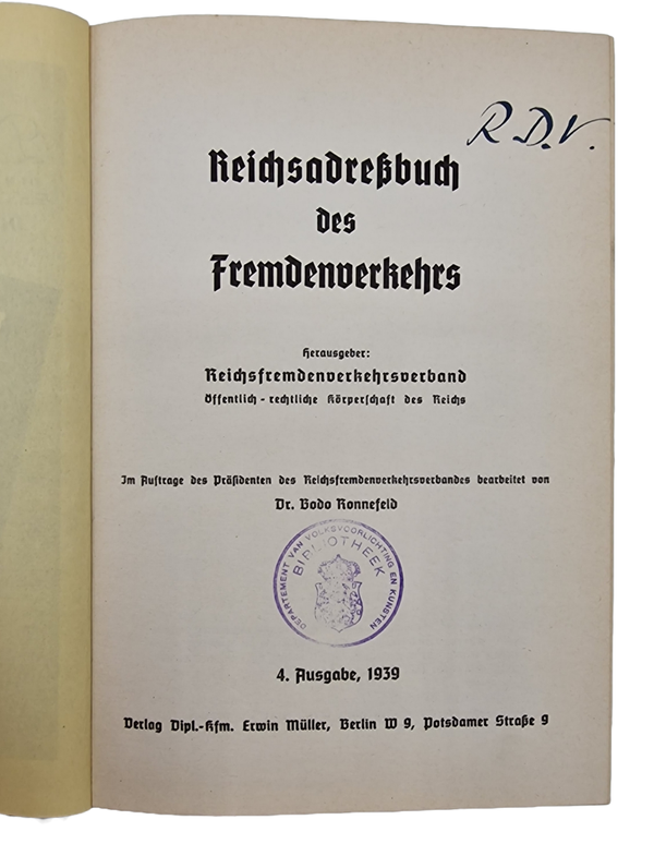 Origineel Wo2 Duits Boek - Reichsadressbuch des Fremdenverkehrs (1939)