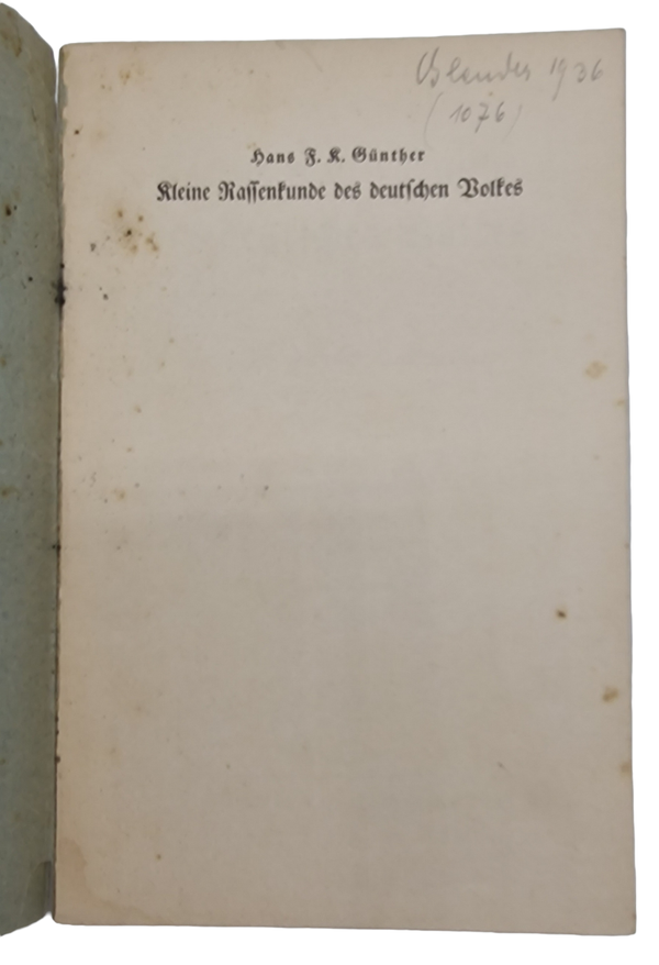 Original WW2 German Book - Kleine Rassenkunde des Deutschen Volkes, Hans F. K. Günther (1935)