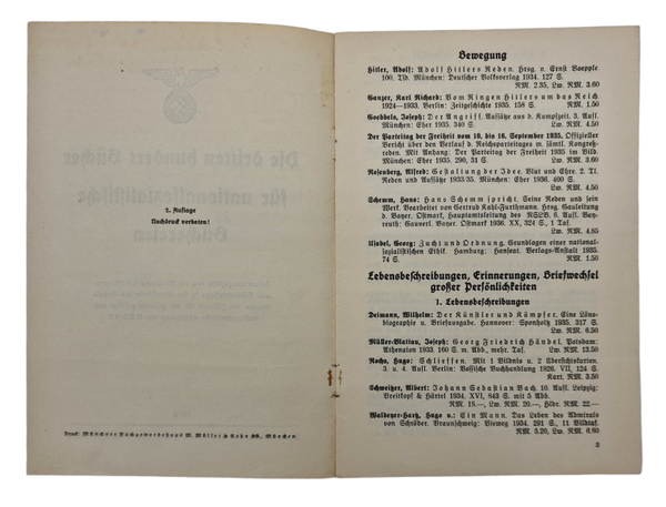 Original WW2 German Brochure - Die dritten hundert Bücher für Nationalsozialistische Büchereien (1936)