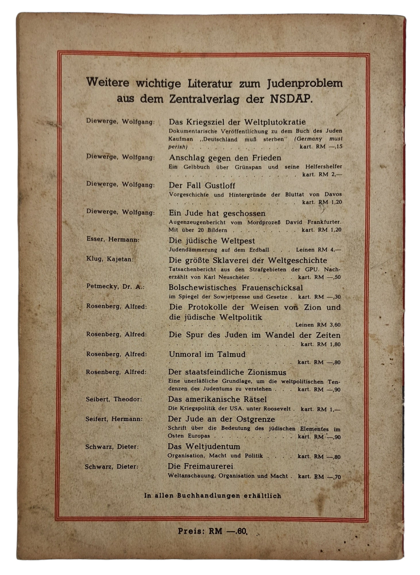 Original WW2 German Brochure - Die Juden in USA über hundert bilddokumente zusammengestellt von Dr. Hans Diebow (1941)