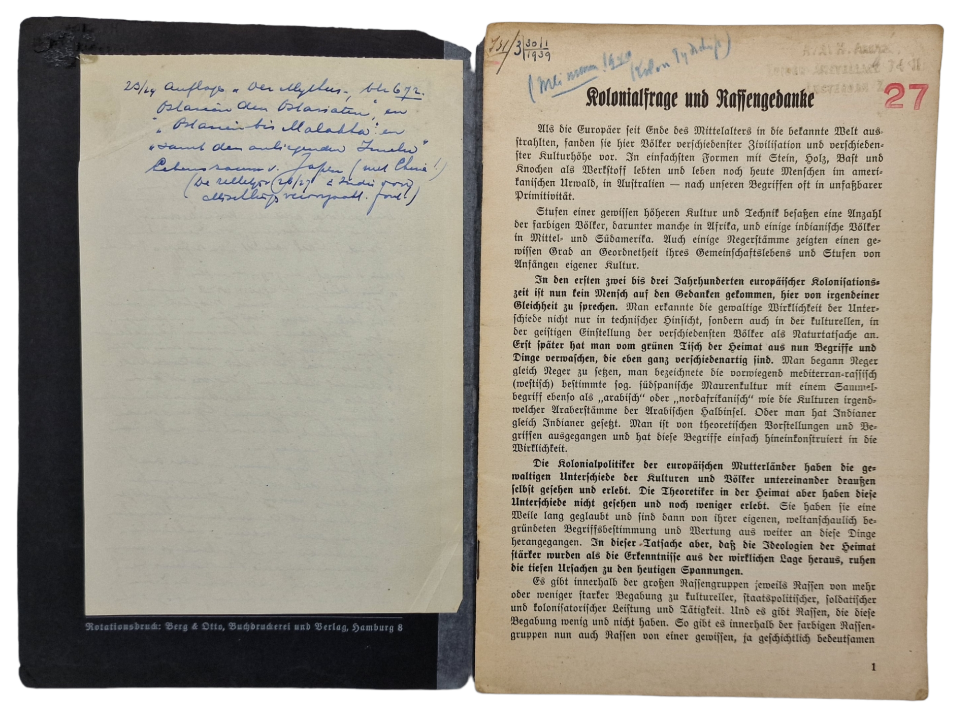 Original WW2 German Brochure - Kolonialfrage und Rassengedanke, Günter Hecht (1939)