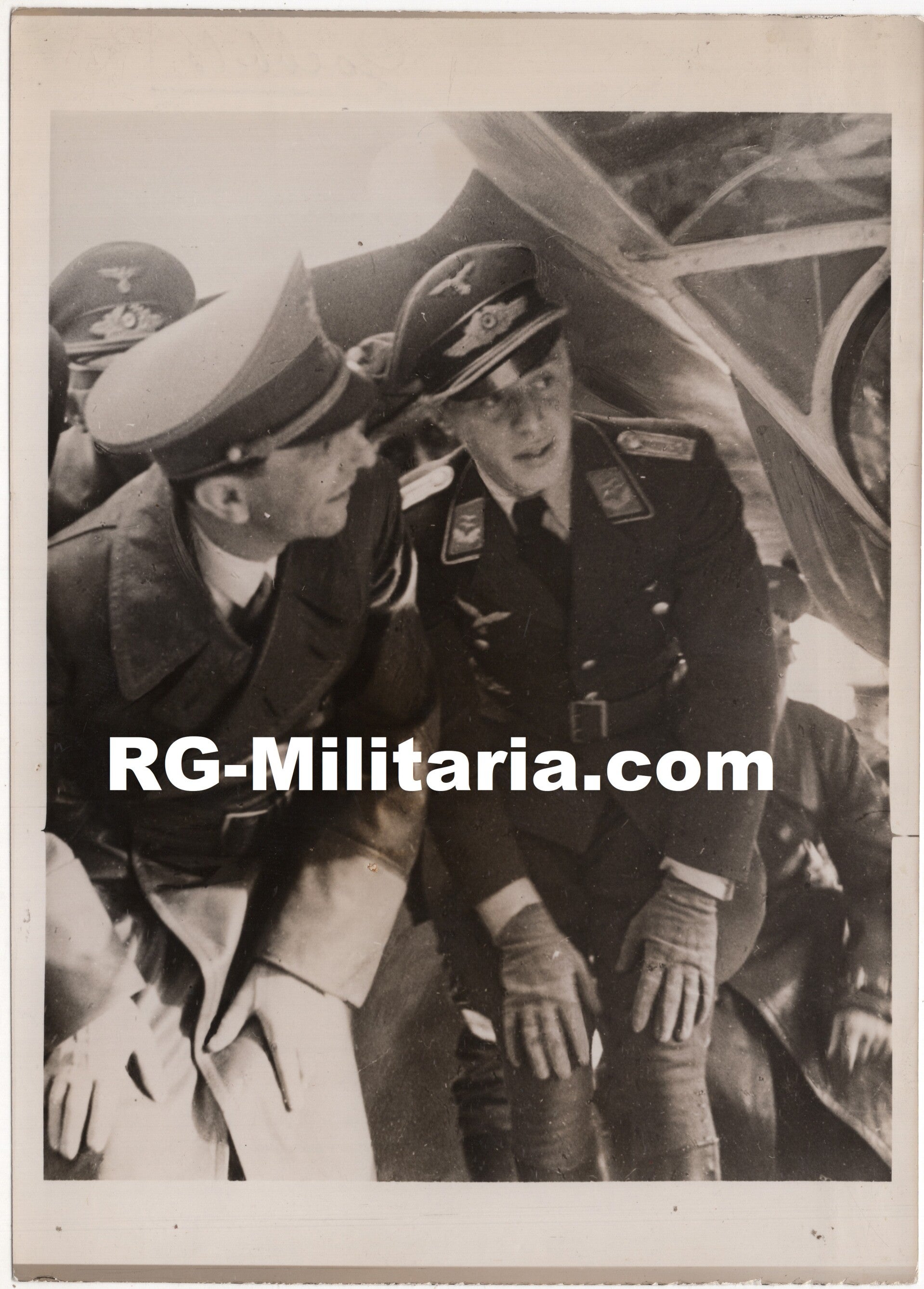 Original WW2 German Press Photo - Joseph Goebbels looking at a Luftwaffe airplane (1940)