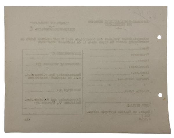 Original WW2 Dutch Collaboration Document - Landwacht Nederland form C
