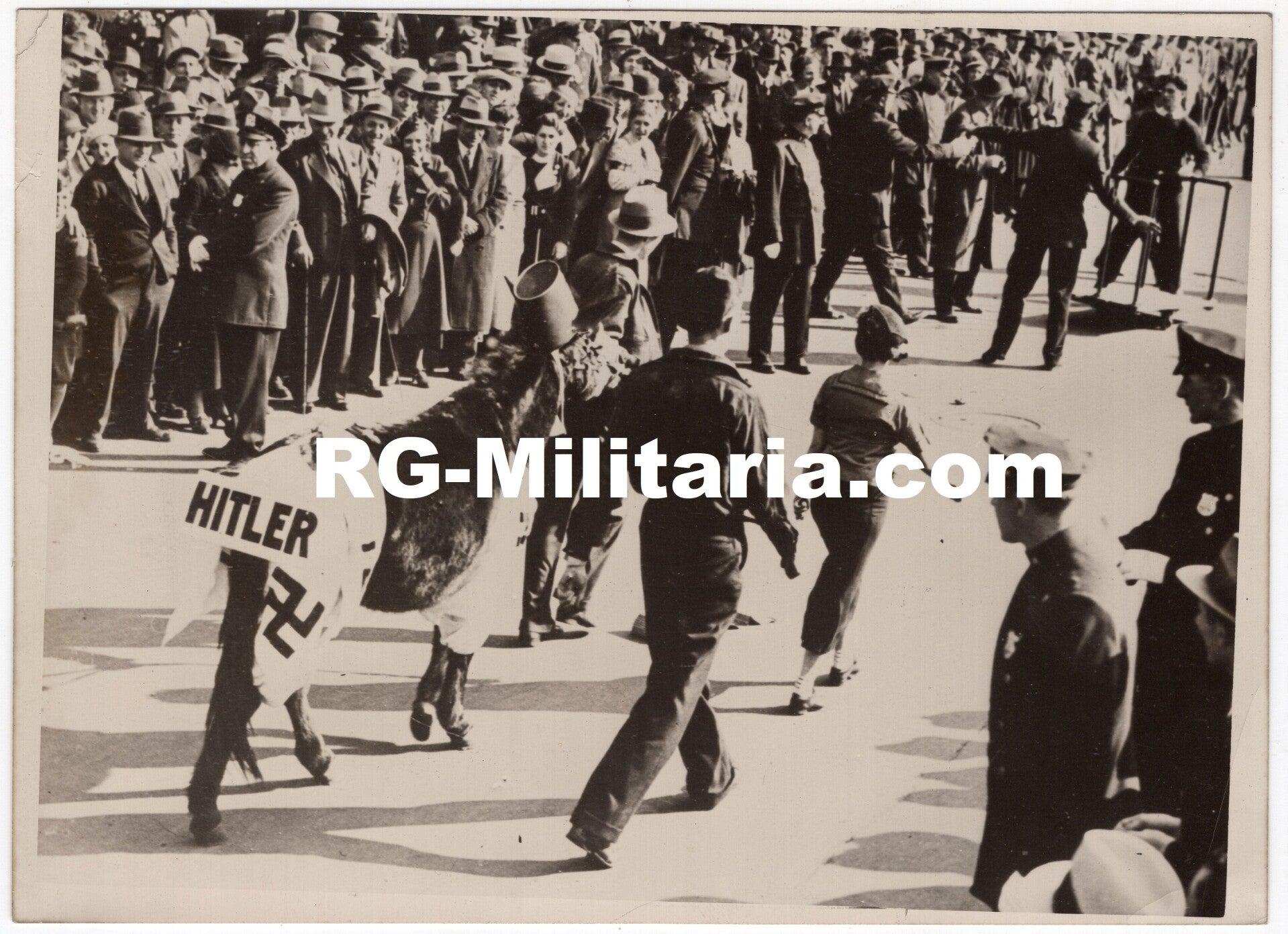 Original WW2 French Press Photo - Anti-nazi donkey, 1st of Mai celebration in New York, USA (1934)