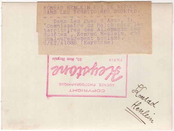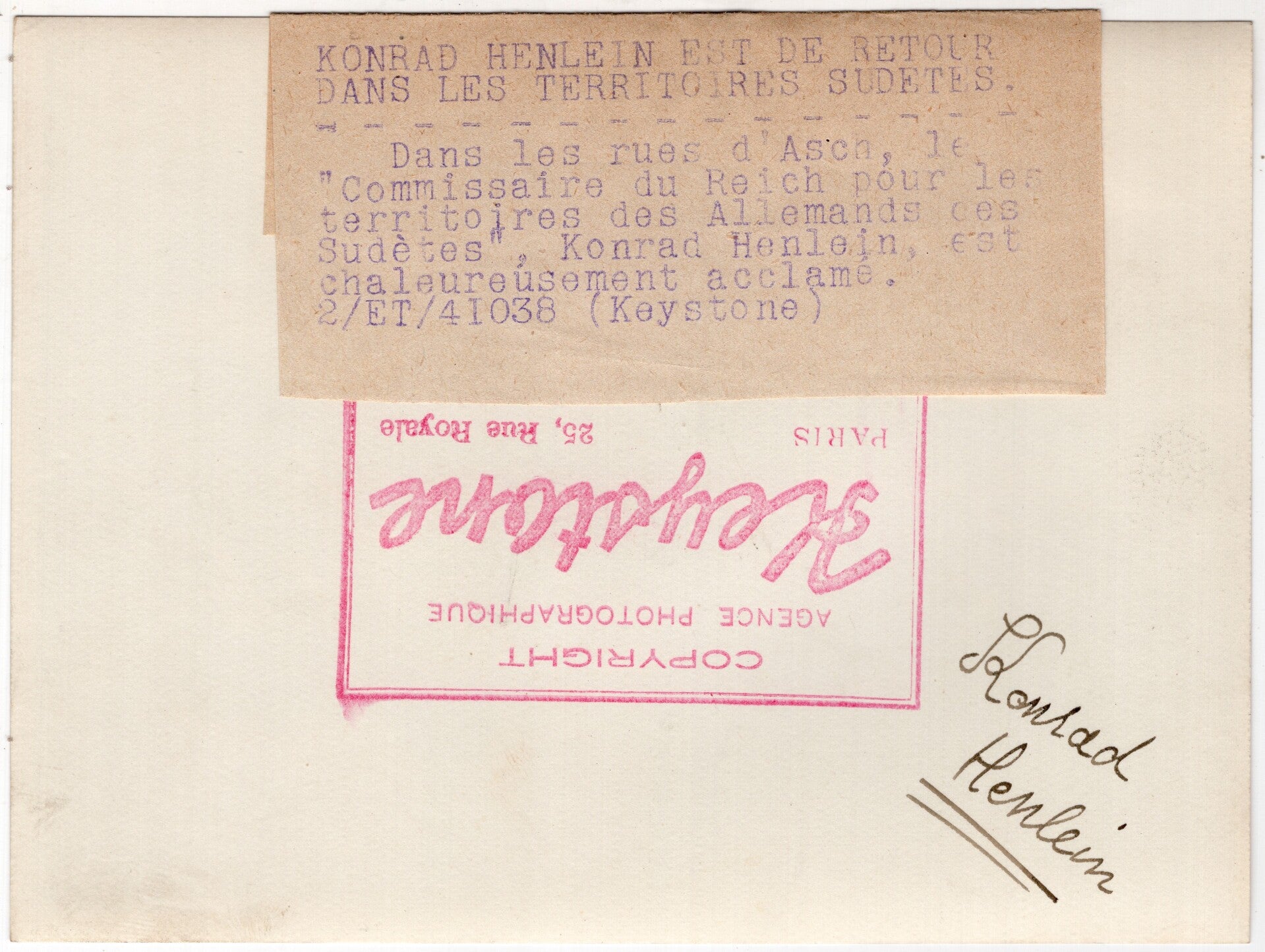 Originele Wo2 Franse Persfoto - Gouleider Sudetenland, Konrad Henlein (1938)