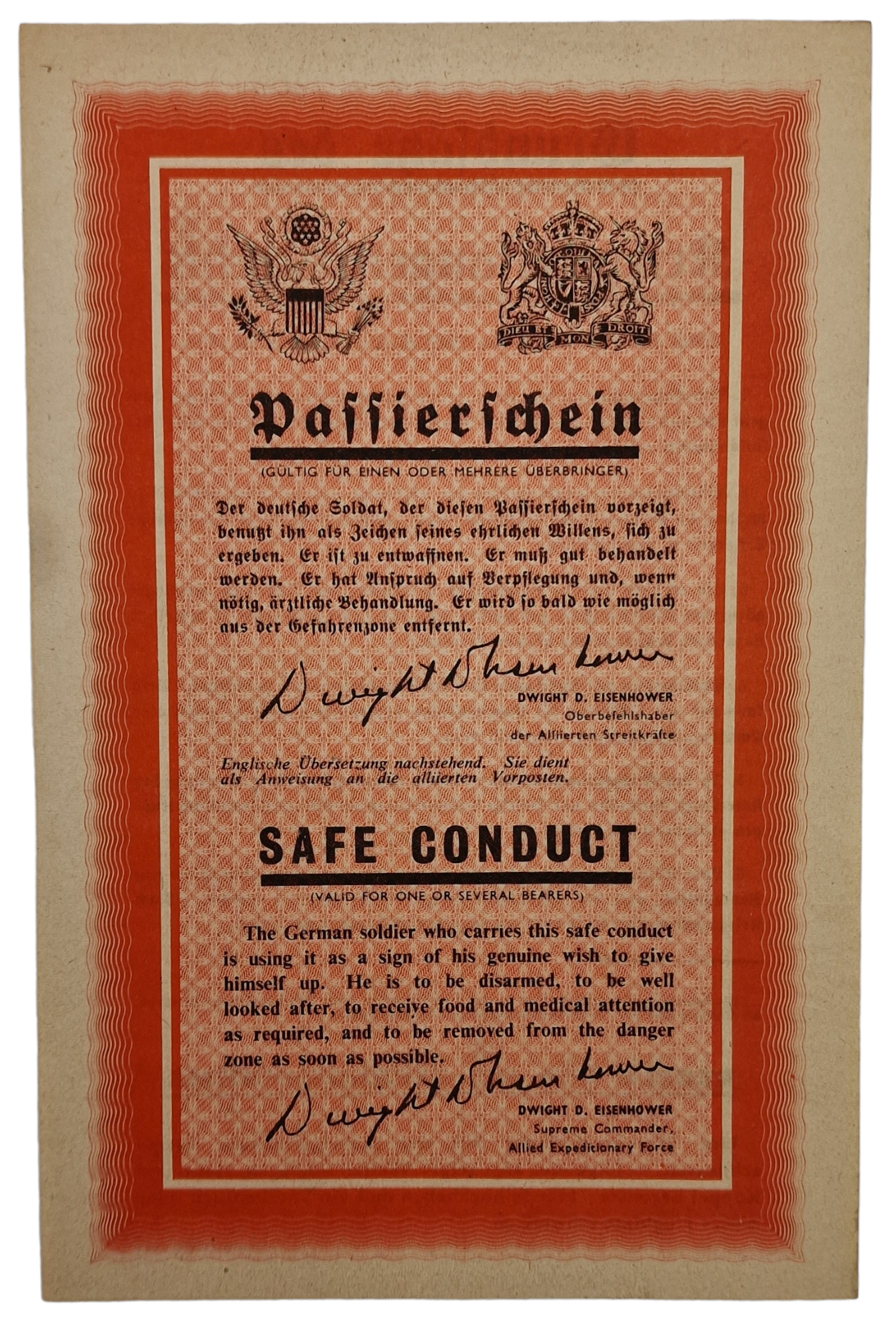 Original WW2 American Leaflet - US/GB - ZG 90K Passierschein Safe Conduct (1945)