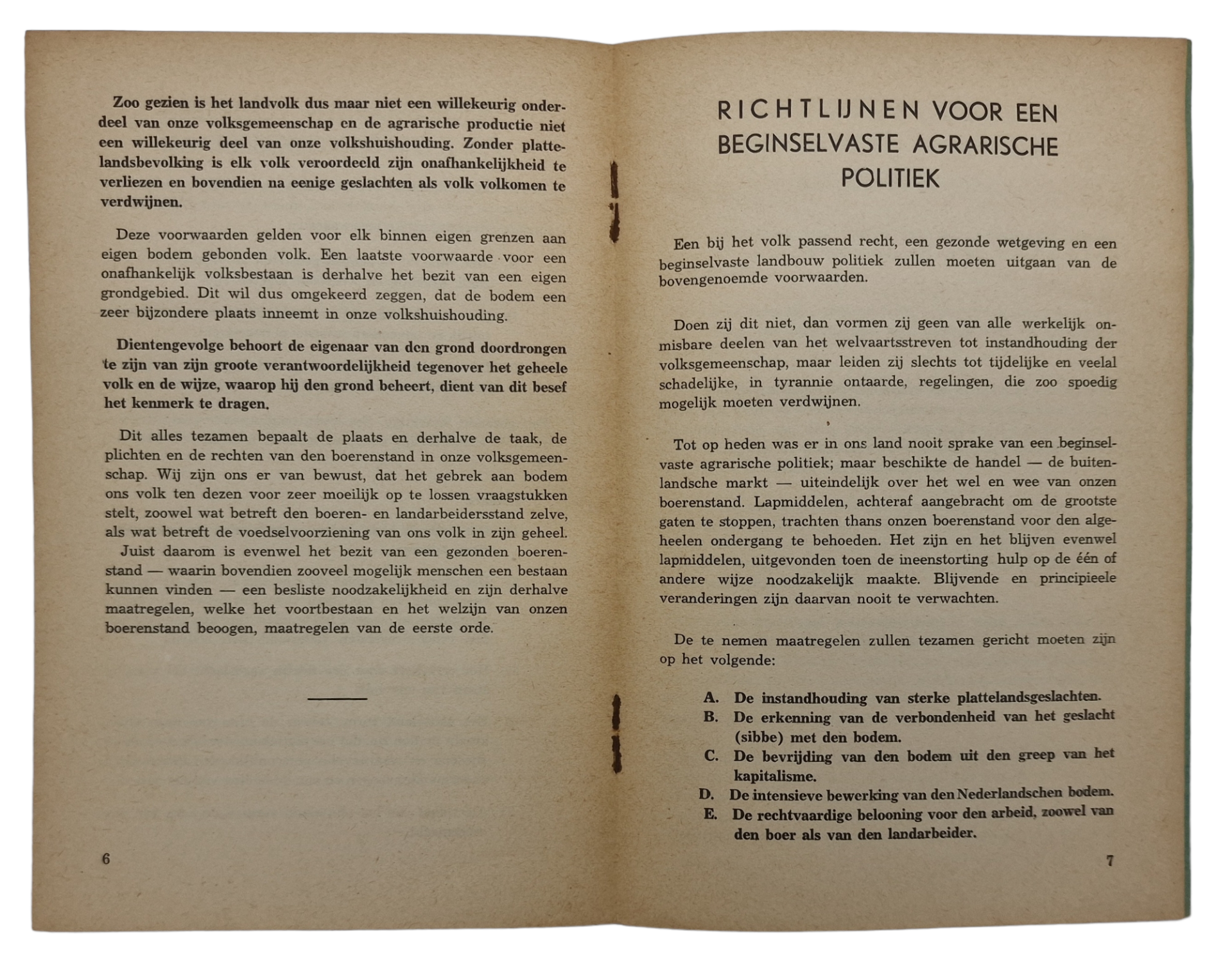 Originele Wo2 Nederlandse Collaboratie Brochure - Grondslagen voor den Opbouw van den Boerenstand, Anton Mussert (1941)