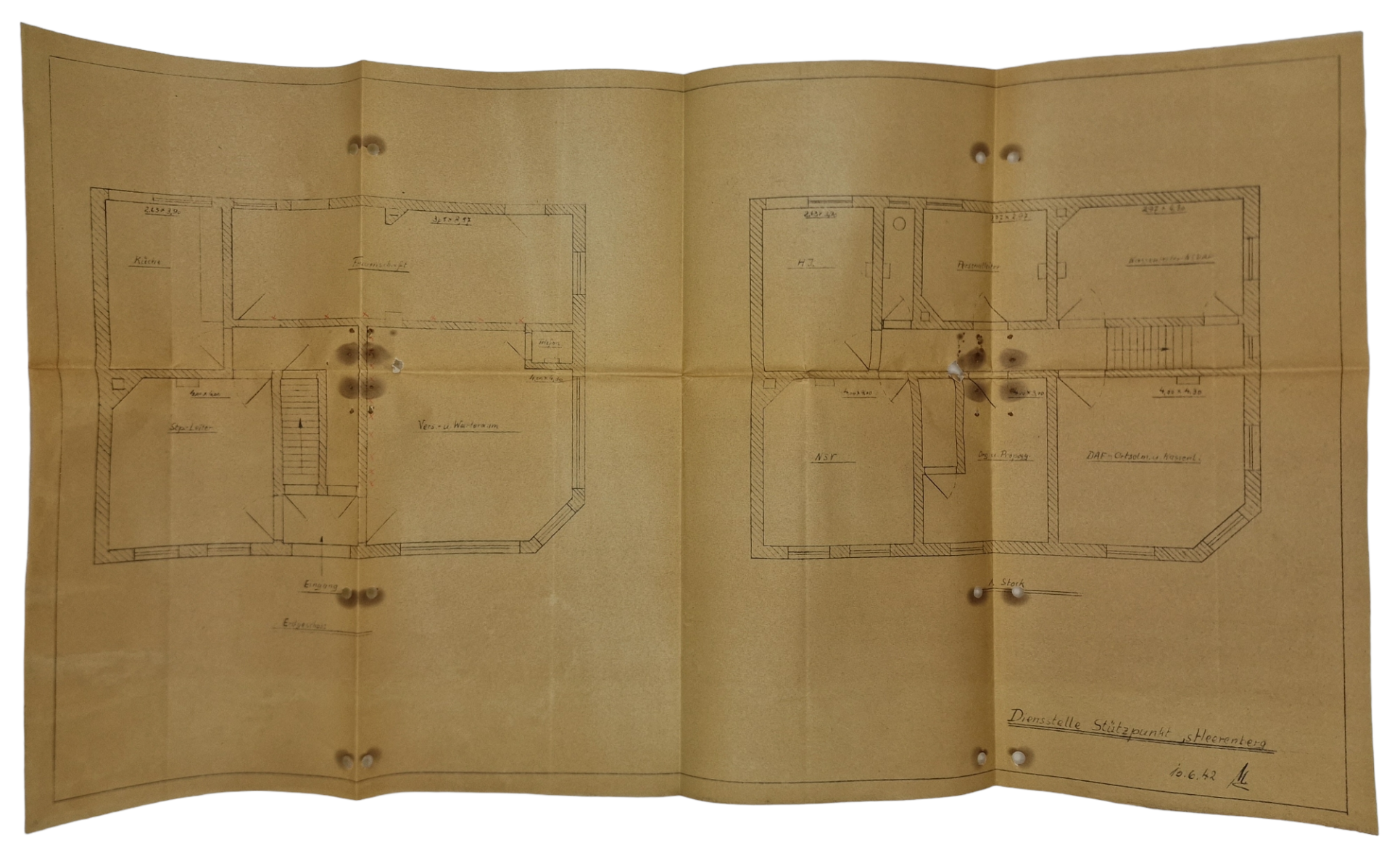 Documents about the building and/or establishing German organisations in the Netherlands. Large set with floor plan of the Stützpunkt 's-Heerenberg.