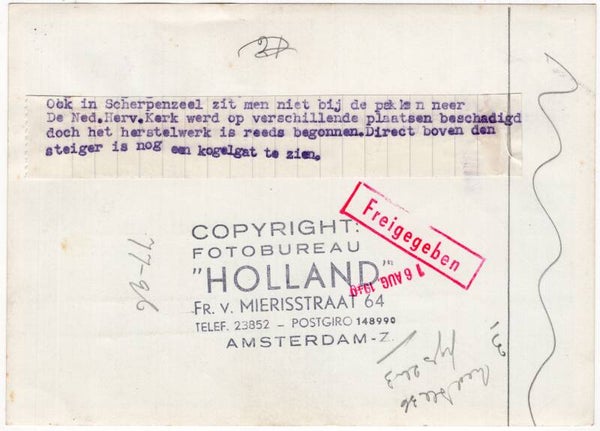 Original WW2 Dutch Press Photo - Repairing a church in Scherpenzeel, Grebbelinie, after the German invasion (1940)