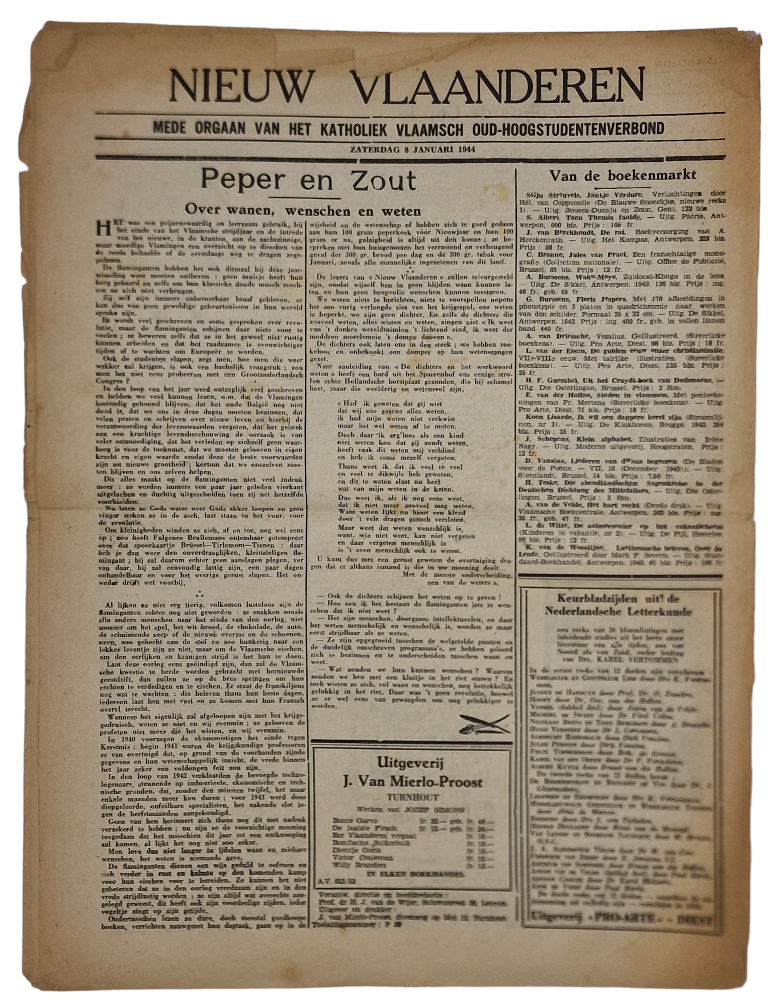 Original WW2 Flemish Newspaper - Nieuw Vlaanderen, stamped Paris (1944)