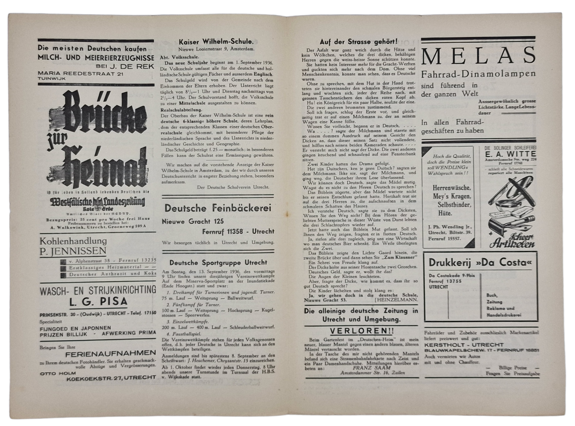 Original WW2 German Dutch Newspaper - Die Deutsche Kolonie in Utrecht No. 17 Olympia, Olympic Games (1936)
