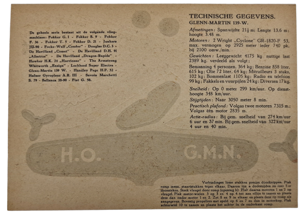 Original WW2 Dutch Document - Honig building kit airplane Glenn Martin 139-W (1939)
