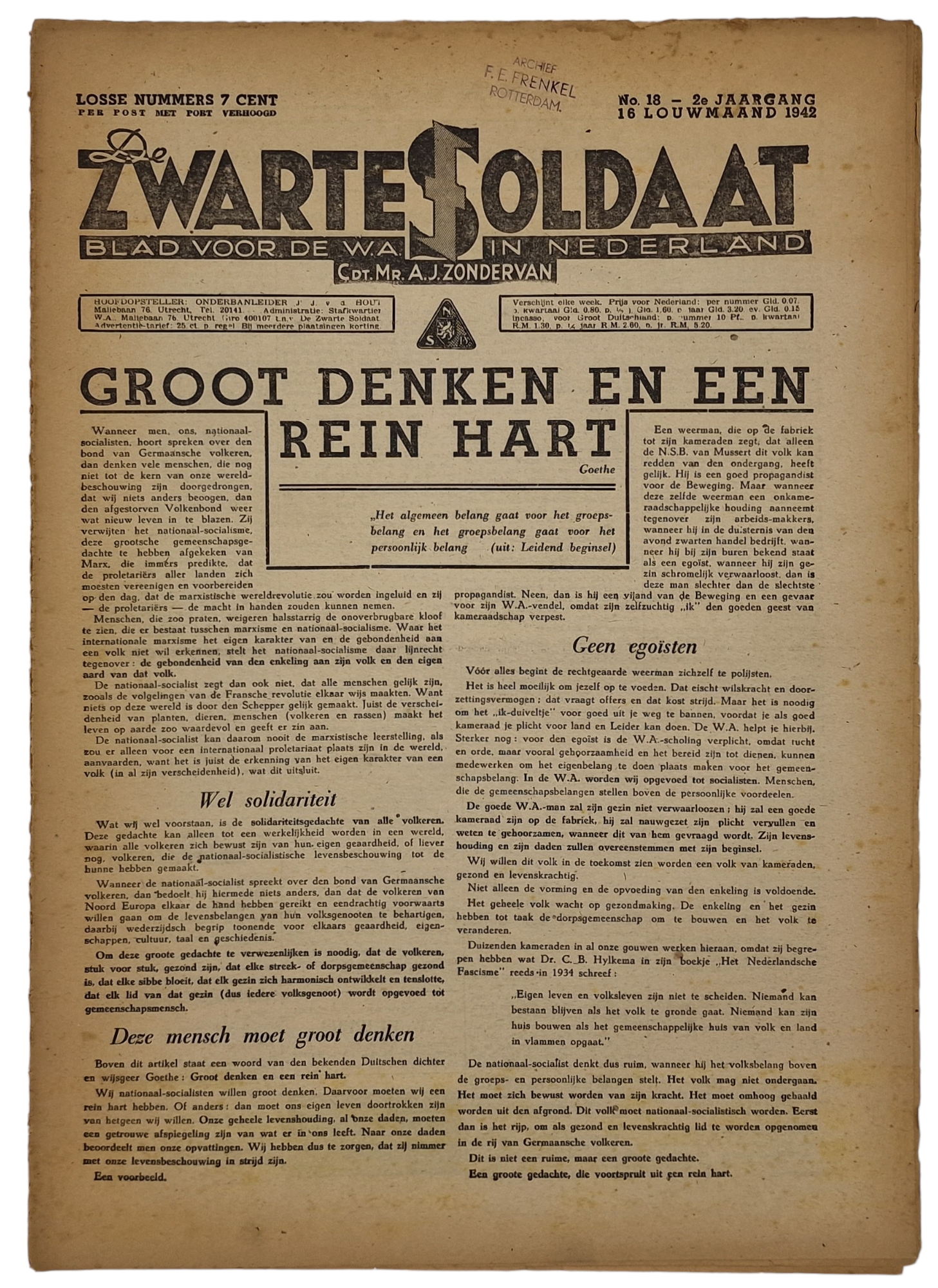 Original WW2 Dutch Collaboration NSB Newspaper - Zwarte Soldaat 2nd Year No. 18 (1942)