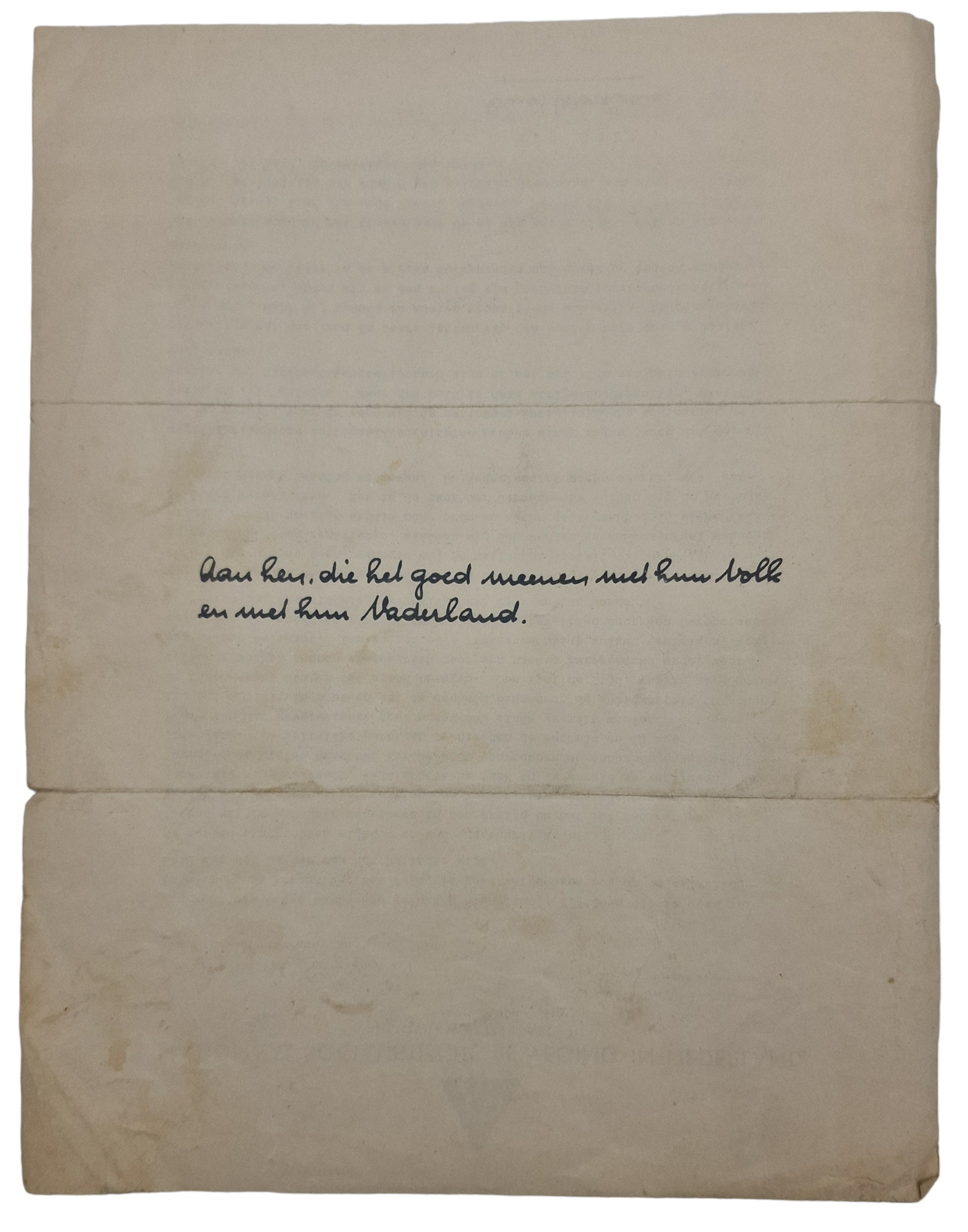 Original WW2 Dutch NSB Collaboration Document - Propaganda letter, Ernst Voorhoeve, Amsterdam (1941)